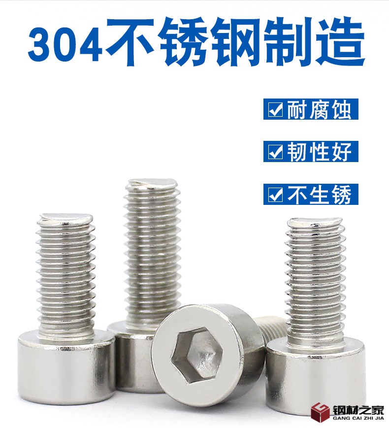 M4M5M6M8 304不锈钢光头圆柱头内六角螺钉不滚花内六角螺丝GB70 .1