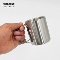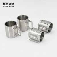 户外304口杯双层折叠把手不锈钢杯咖啡杯啤酒马克杯金属露营水杯