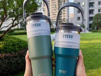 tyeso新款咖啡杯双层保温保冷手提冰霸杯大容量不锈钢双饮车载杯