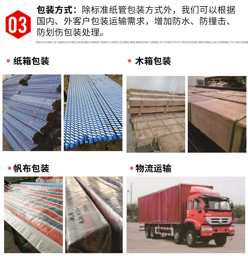 棒材冷抽、削皮后经精密研磨、抛光及镀硬铬处理,增加表面硬度,且材质易加工车削,