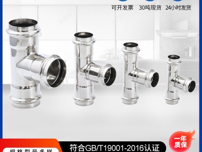 现货304卫生级不锈钢等径三通 给水管件三通卡压式等径三通管件