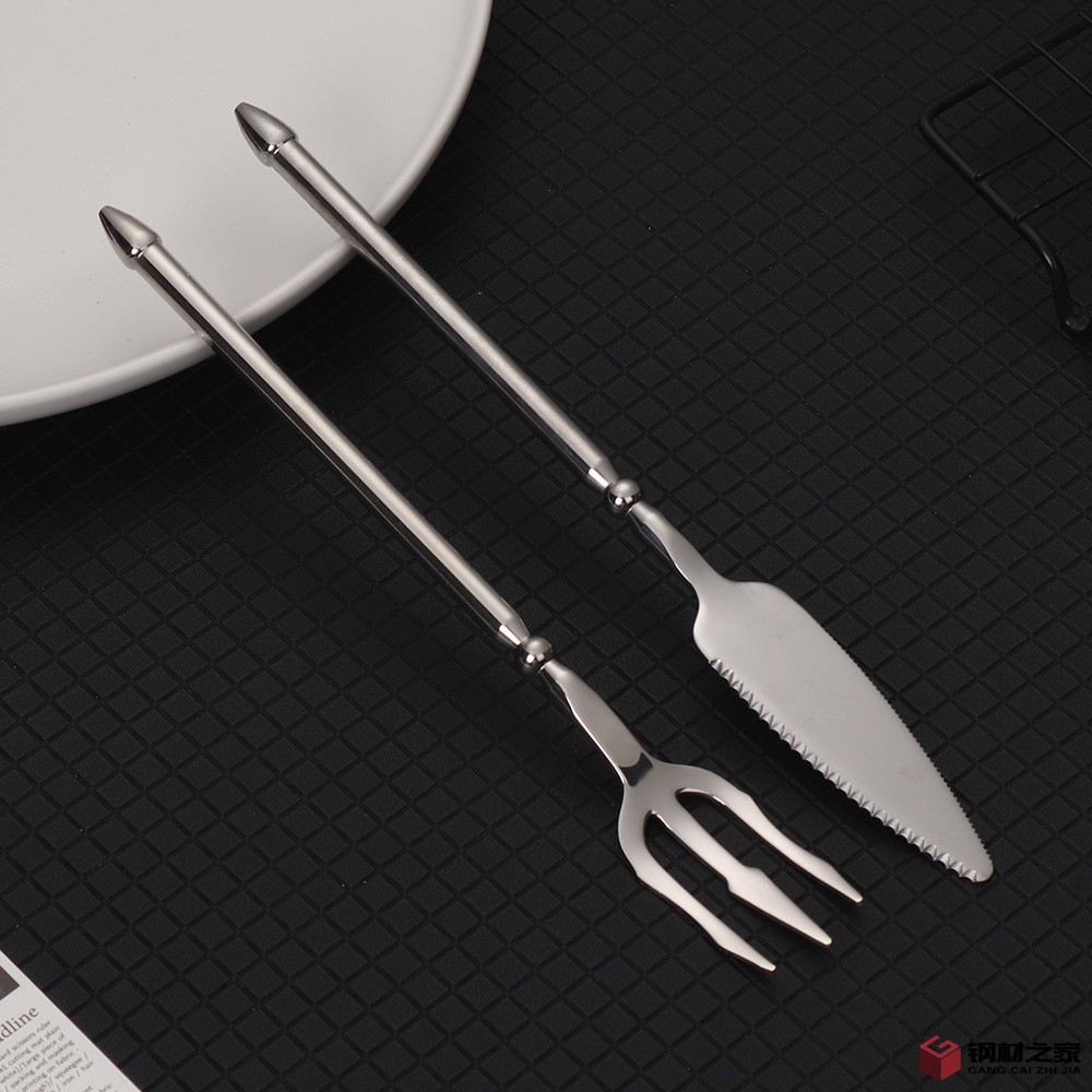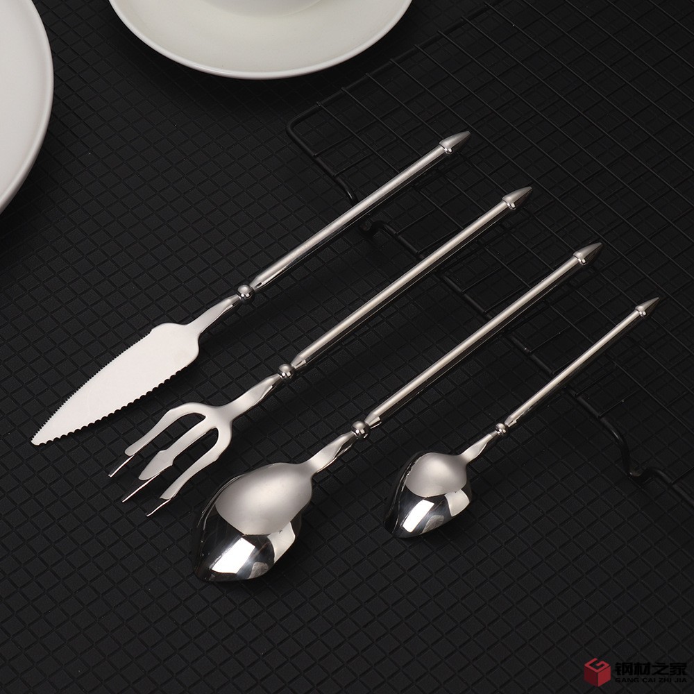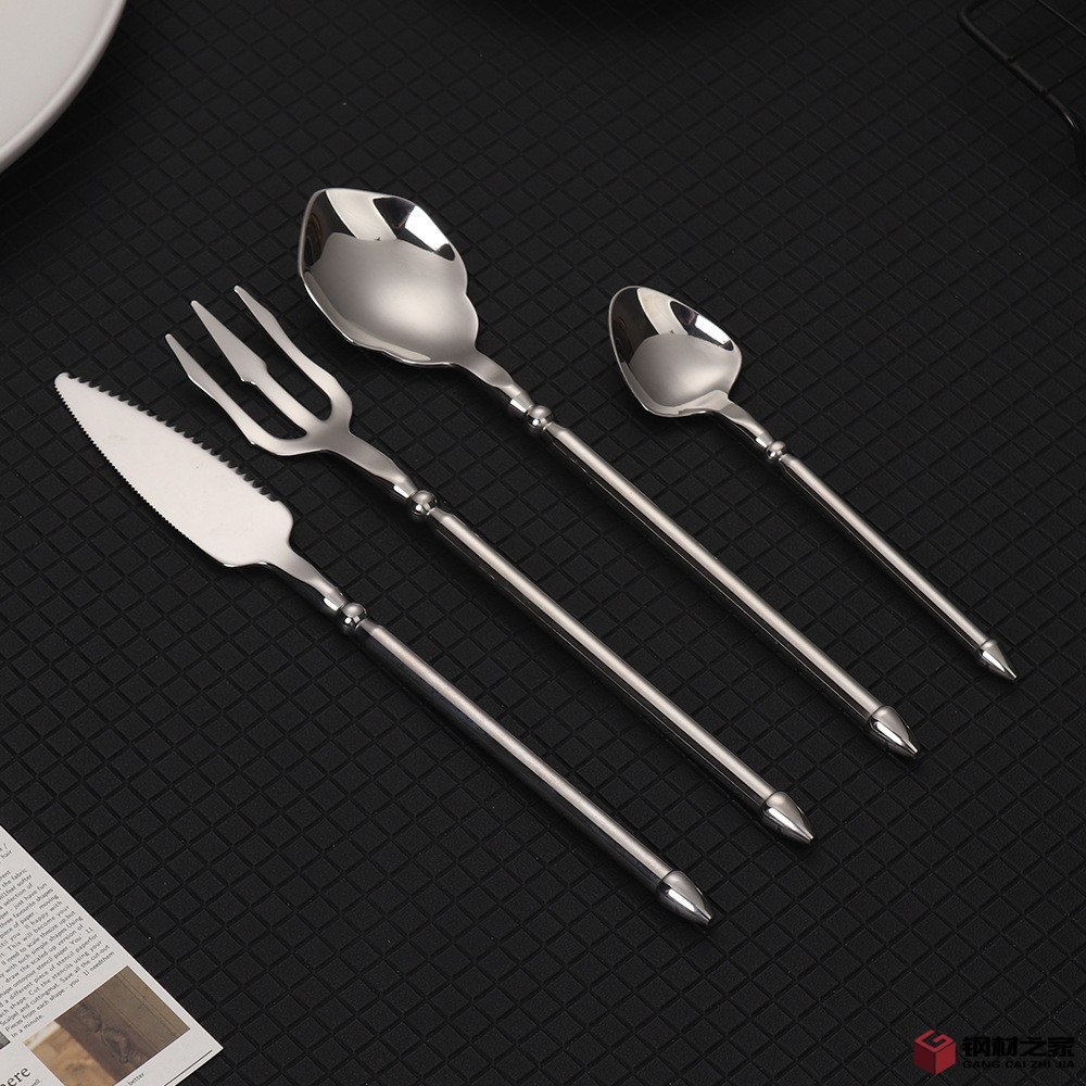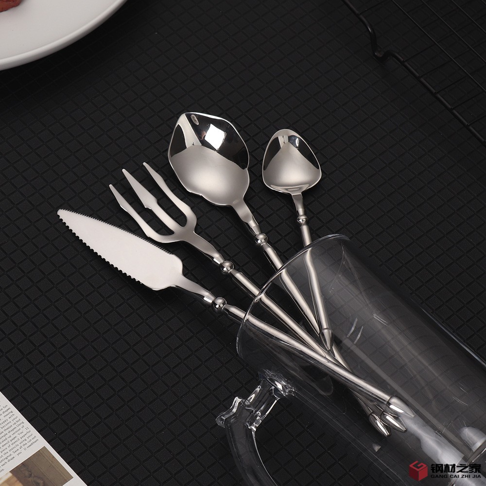 跨境海王刀叉304不锈钢牛排刀叉勺子圆柄加厚复古西餐具ins北欧风