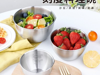 304不锈钢碗带刻度料理碗 家用烘培碗水果沙拉盆 ins打蛋小碗