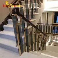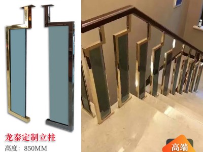 龙泰梯业 钢化玻璃楼梯扶手 不锈钢金色立柱楼梯扶手 柱子扶手