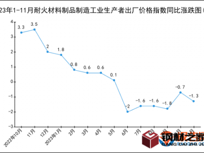 2023年1-11月耐火材料制品制造工业生产者出厂价格指数统计分析