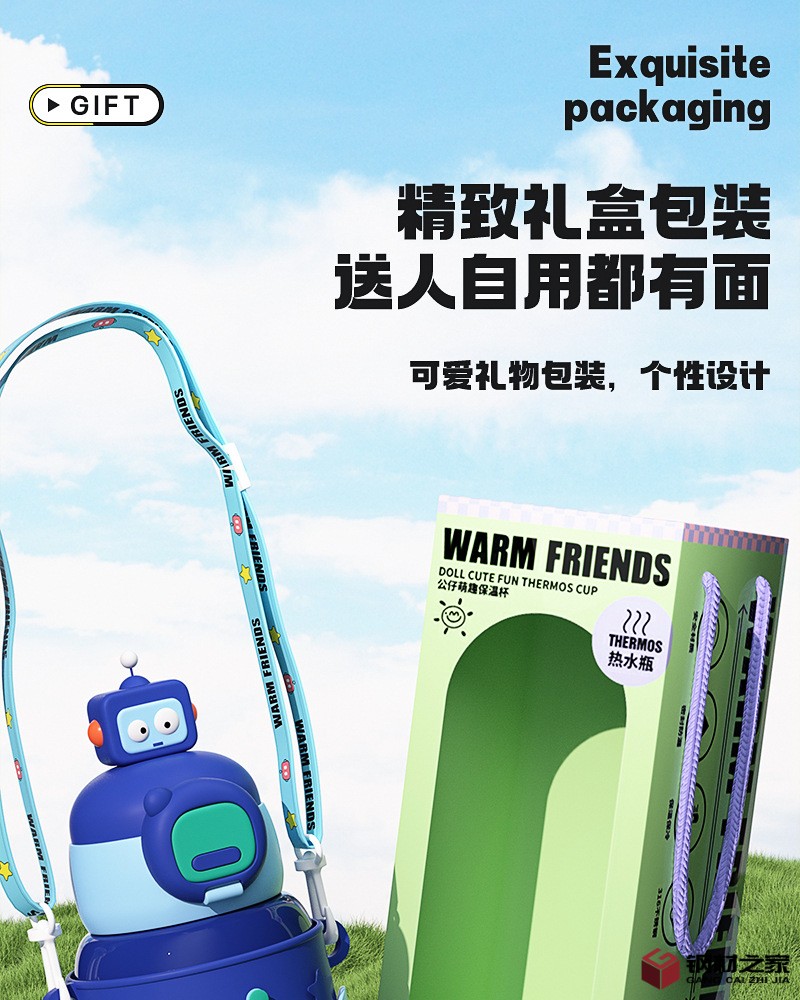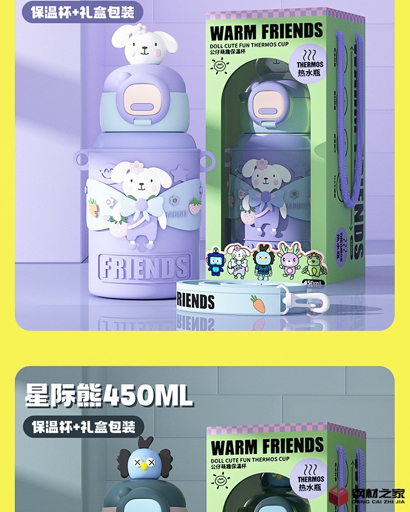 新款儿童保温杯男女可爱风高颜值水壶卡通公仔吸管杯便携防摔水杯