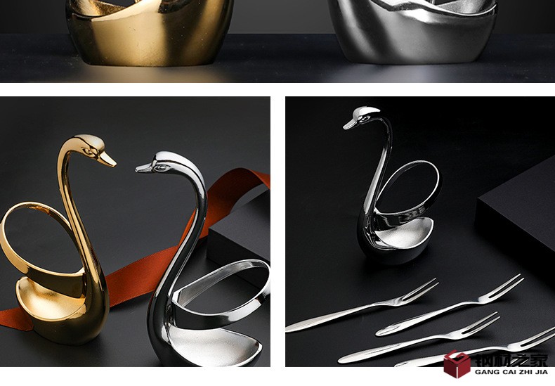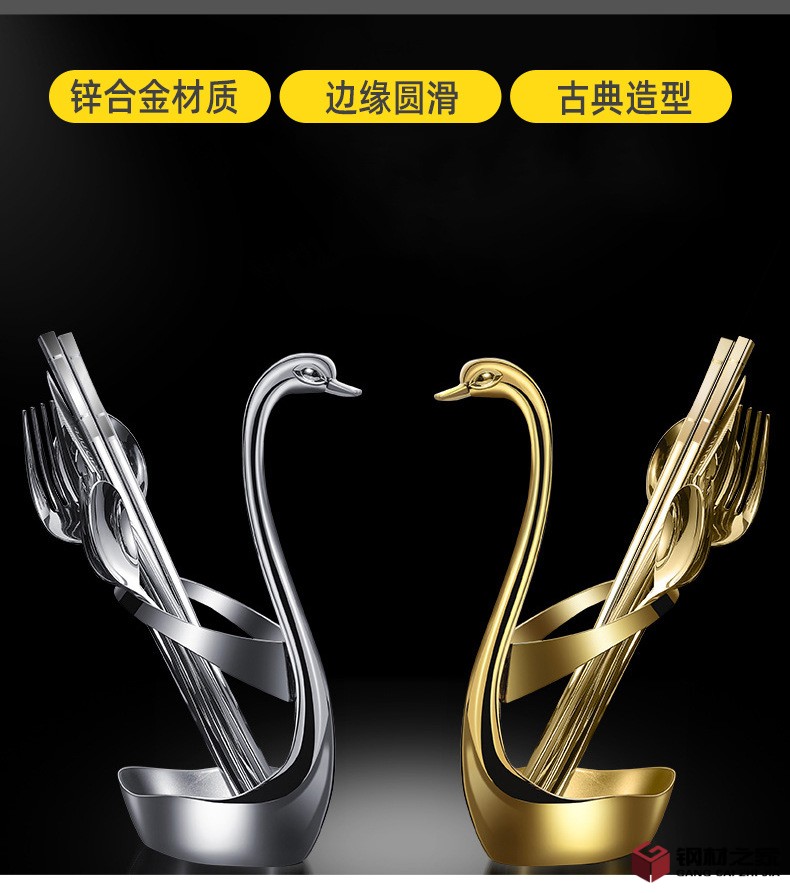 天鹅底座水果叉304不锈钢筷子架组合餐厅酒店摆件餐具置物收纳架