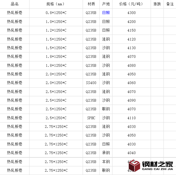 2023年8月8日广州热轧板卷价格今日报价表