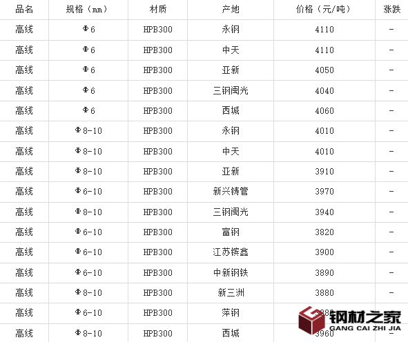重点市场高线现货价对比
