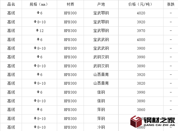 重点市场高线现货价对比