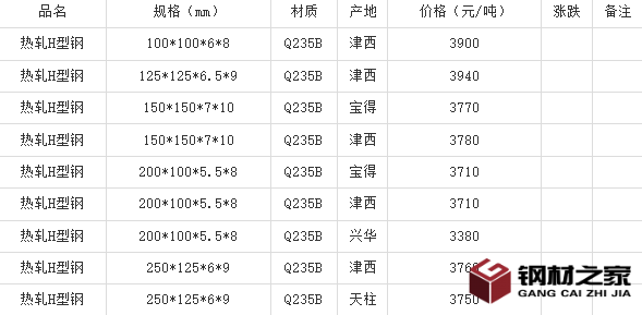 型材市场H型钢最新行情