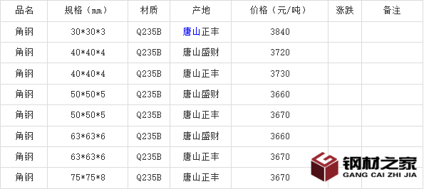 型材市场角钢最新行情