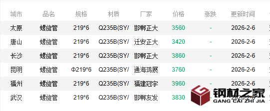 2026年1月19日石家庄螺旋管价格今日报价行情