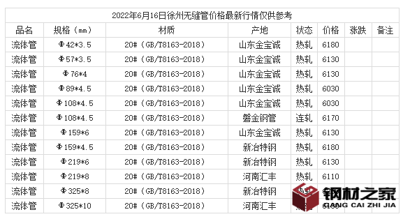 2022年6月16日徐州无缝管价格最新行情