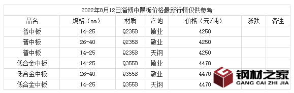 2022年8月12日淄博中厚板价格最新行情