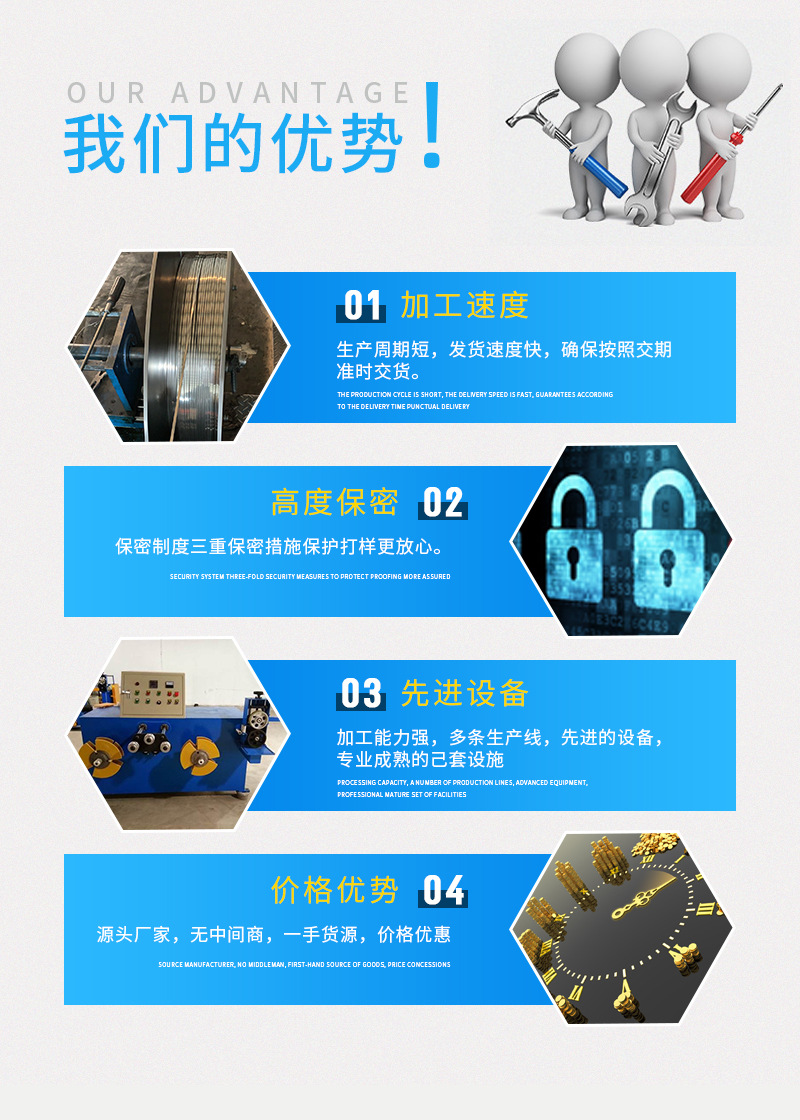 压扁、调直、拉伸,焊接,分条,表面处理、冷压热处理