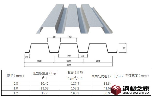 YX75-200-600楼承板